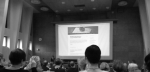Pedagoginen yliopistonlehtori Eeva Pyörälä puolestaan puhui käänteisestä oppimisesta ja lyhyiden 5-15 minuuttia kestävien videoklippien puolesta. Eeva otti yleisön haltuunsa johtamalla taputusorkesteria.